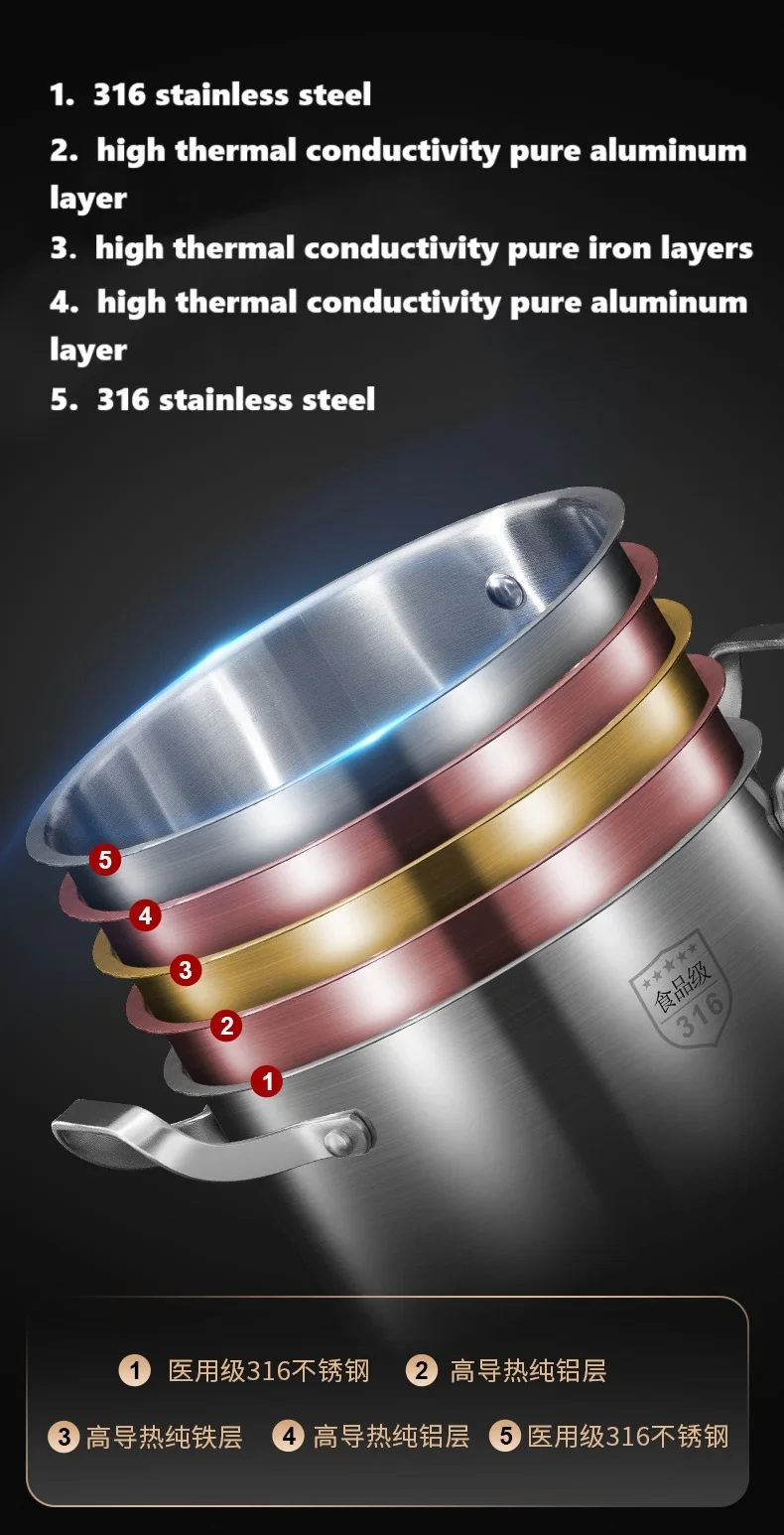 - 🔒 Food‑Safe Integrity — 316 stainless steel keeps acidic and long‑cooked dishes free from metallic taste.