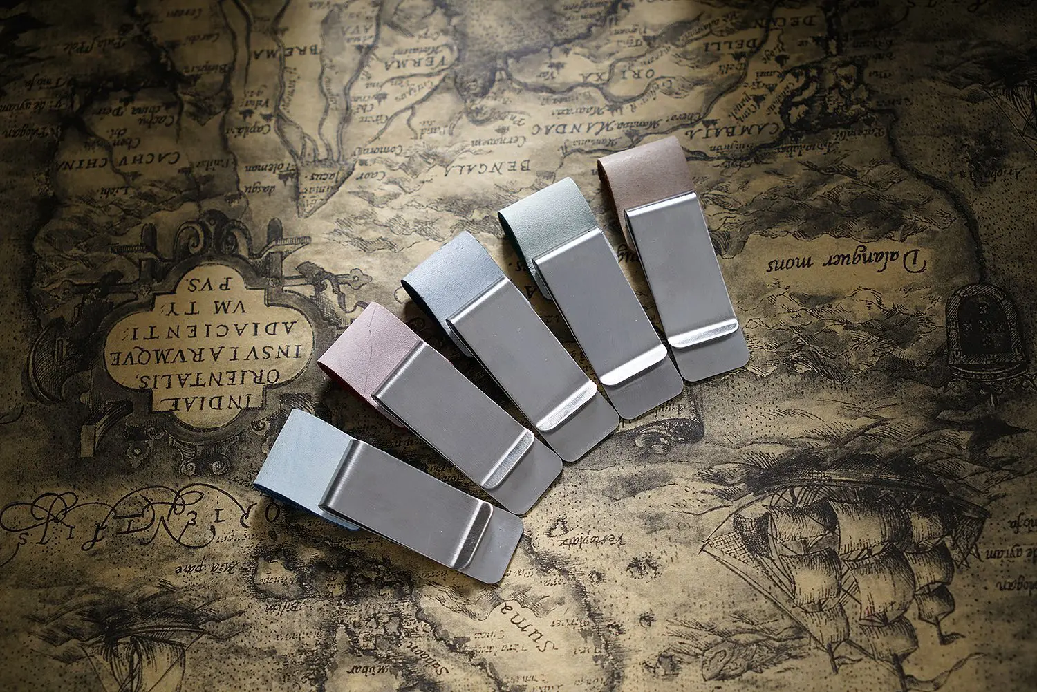 Precision-crafted for neat organisation — minimalist metal clip with premium cowhide trim for a professional finish.