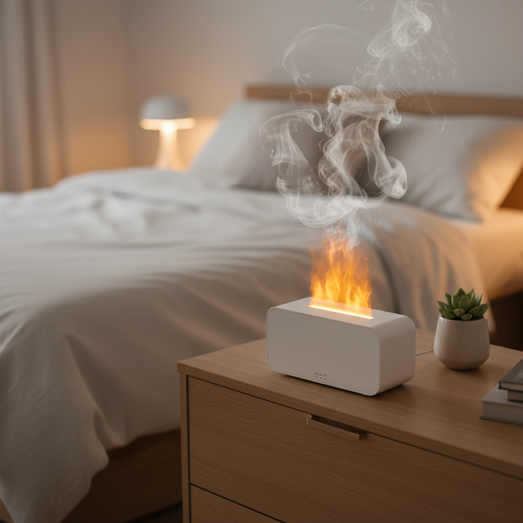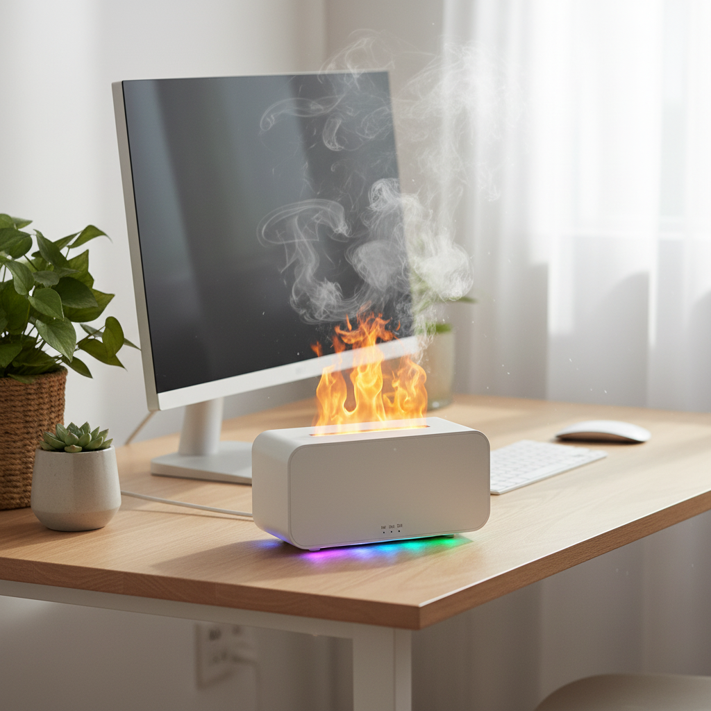 The Flame humidifier UK shoppers love has soft mist with a realistic glow. It is a mini aroma diffuser with light that helps to produce calming ambience and humidify small rooms, and it is a fashionable portable humidifier with flame effect in bedrooms and desks.