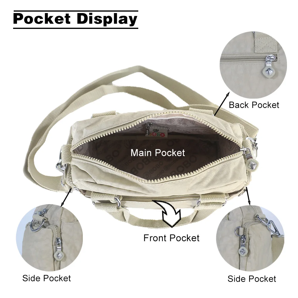 Fancy METCN Crossbody Bag For Women Large Capacity Nylon 3 Pockets