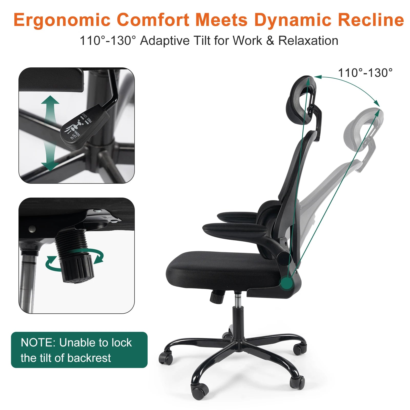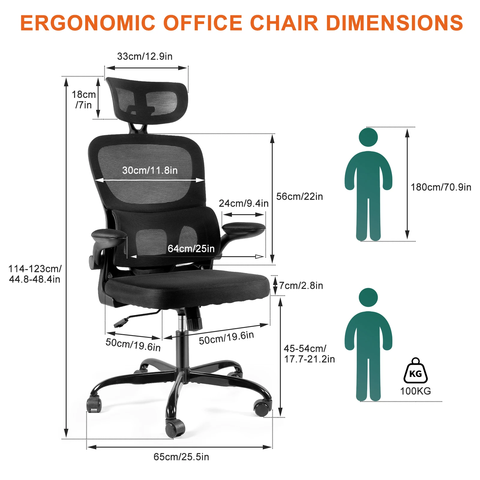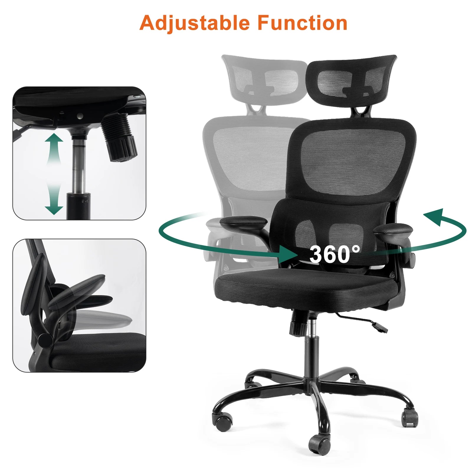 Ergonomic Office Chair With Foldable Armrests And Height Adjustment For Office