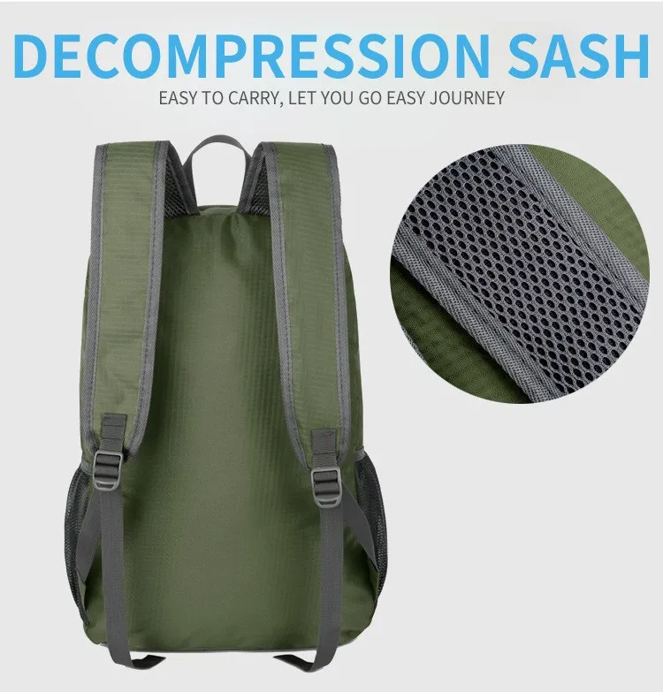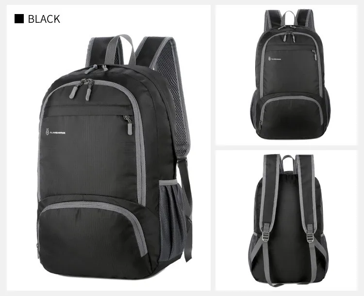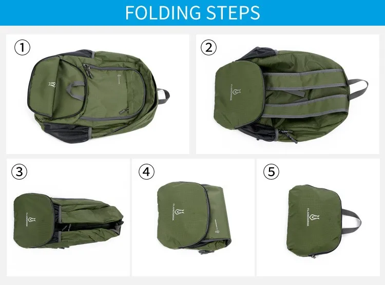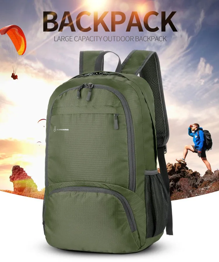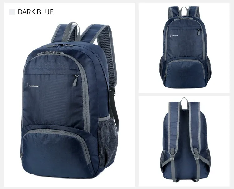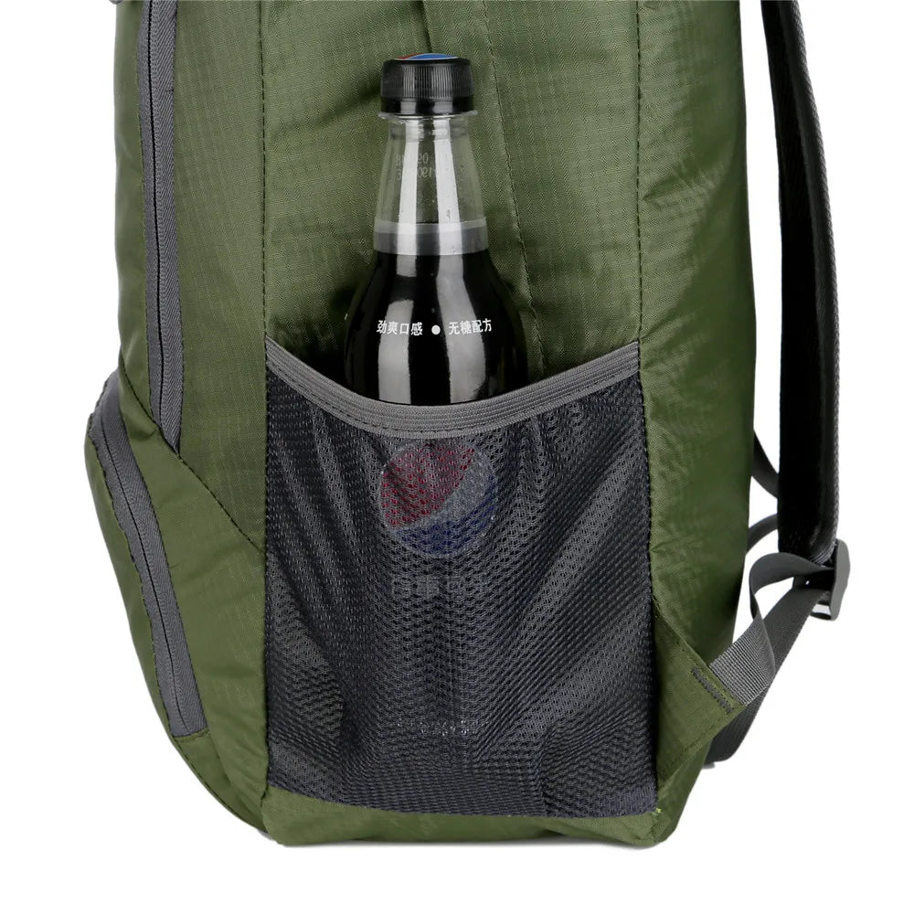 Made with premium nylon fabric, the backpack is lightweight and water-resistant. It features a main compartment, 3 zippered front pockets and 2 mesh side pockets to keep your items organized. It is foldable into a compact size for convenient storage, great for camping, hiking, cycling, traveling, and other outdoor activities.