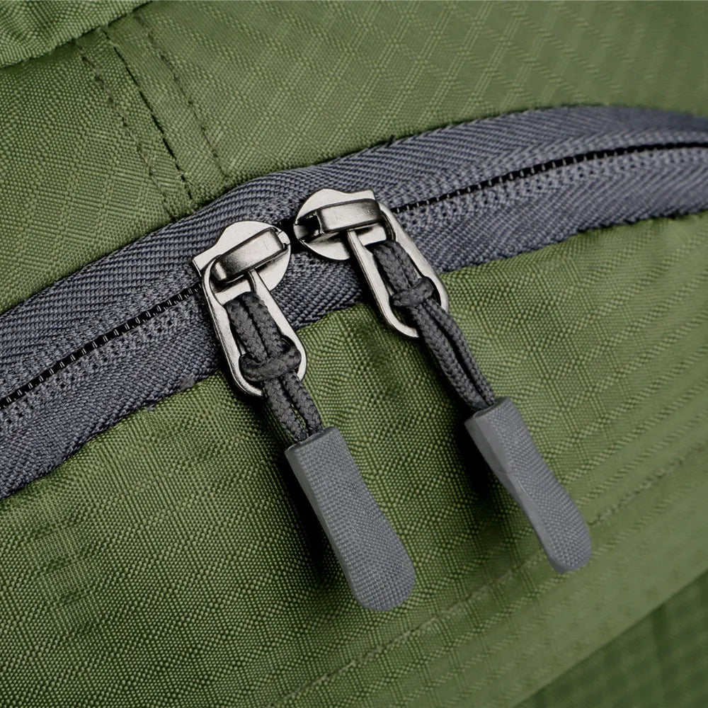 Made of ripstop nylon fabric, water-resistant and lightweight.