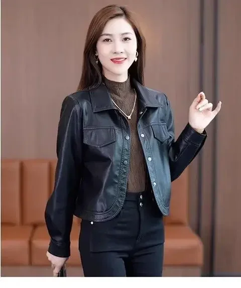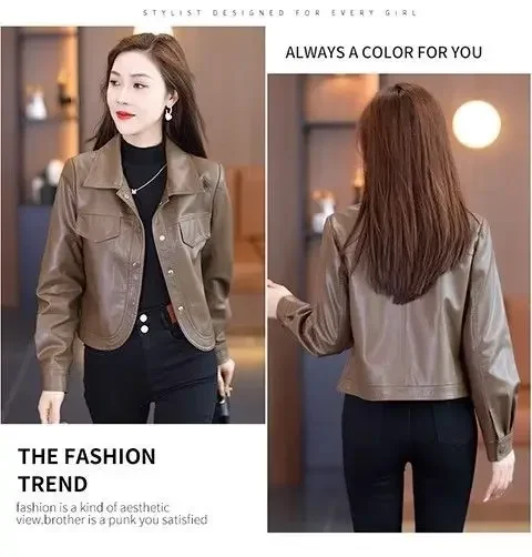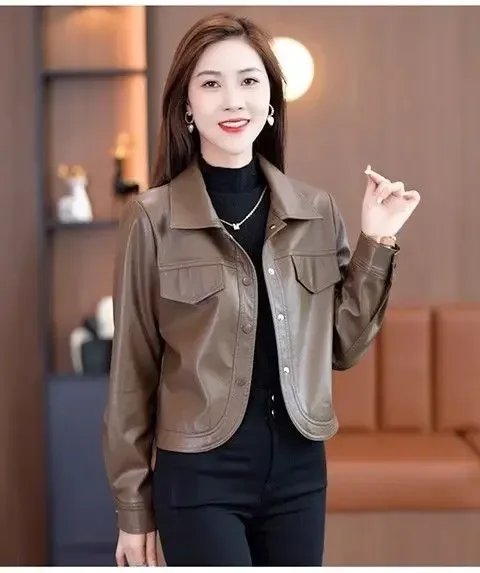 Maillard Short Leather Jacket For Women Spring Autumn Chic by Maillard â a cropped leather jacket that delivers stylish warmth and effortless layering for transitional spring and autumn days.