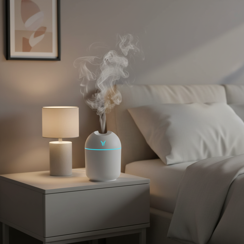 Compact, ultra-quiet humidification and aromatherapy designed for bedside, desk or in-car use — convenience meets calm.