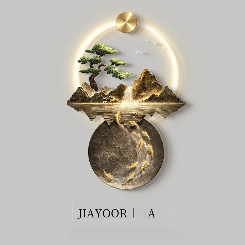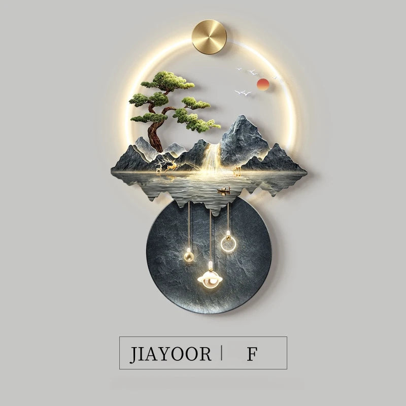 JIAYOOR LED Wall Lamp with Remote Control for Living Room Decor, Landscape Mural Light