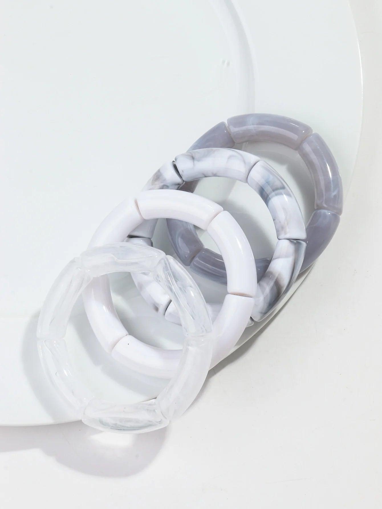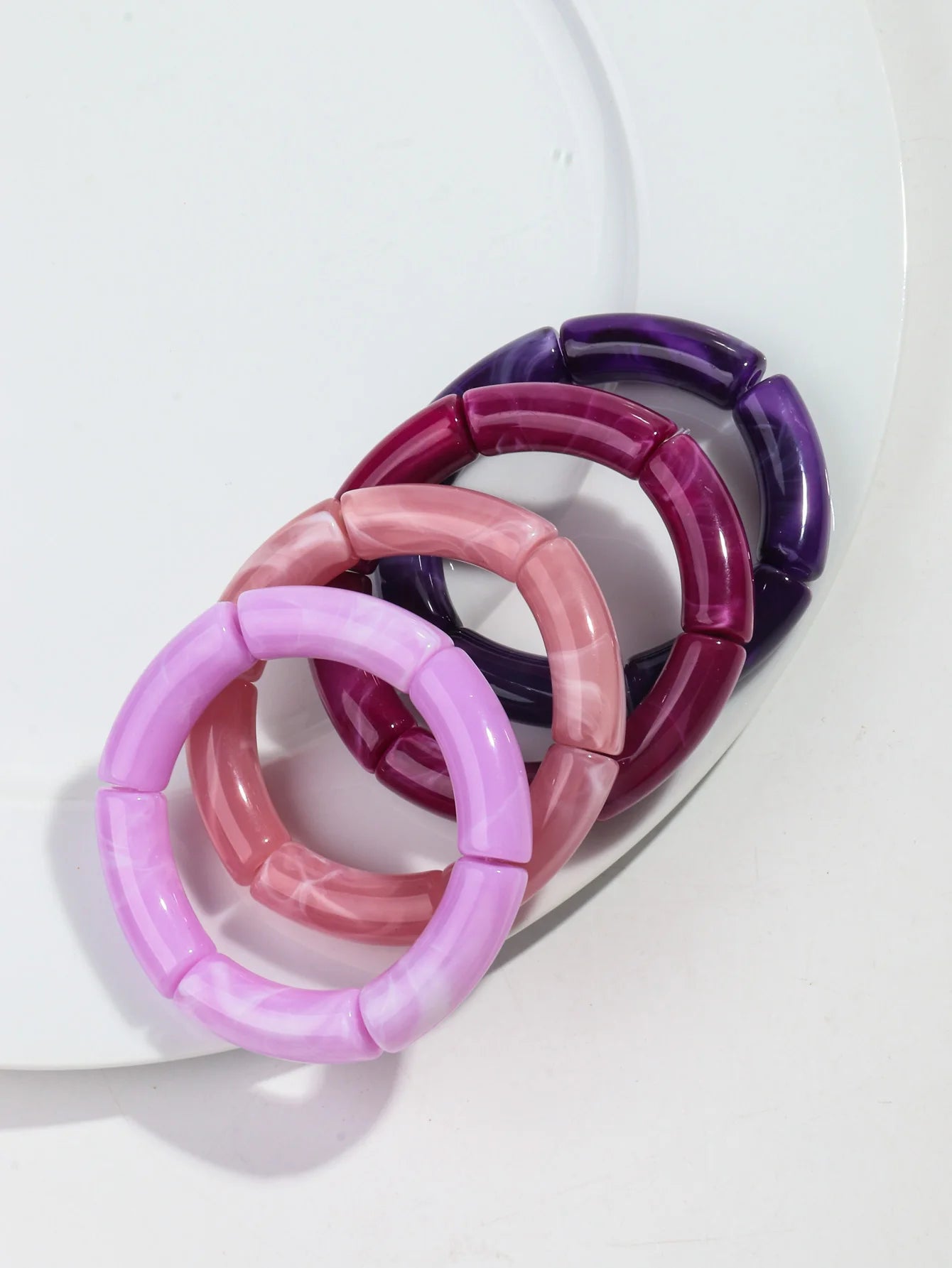 4PCS Set Swirl Resin Bamboo Elastic Bracelet: Trendy Designer Acrylic Bangles
