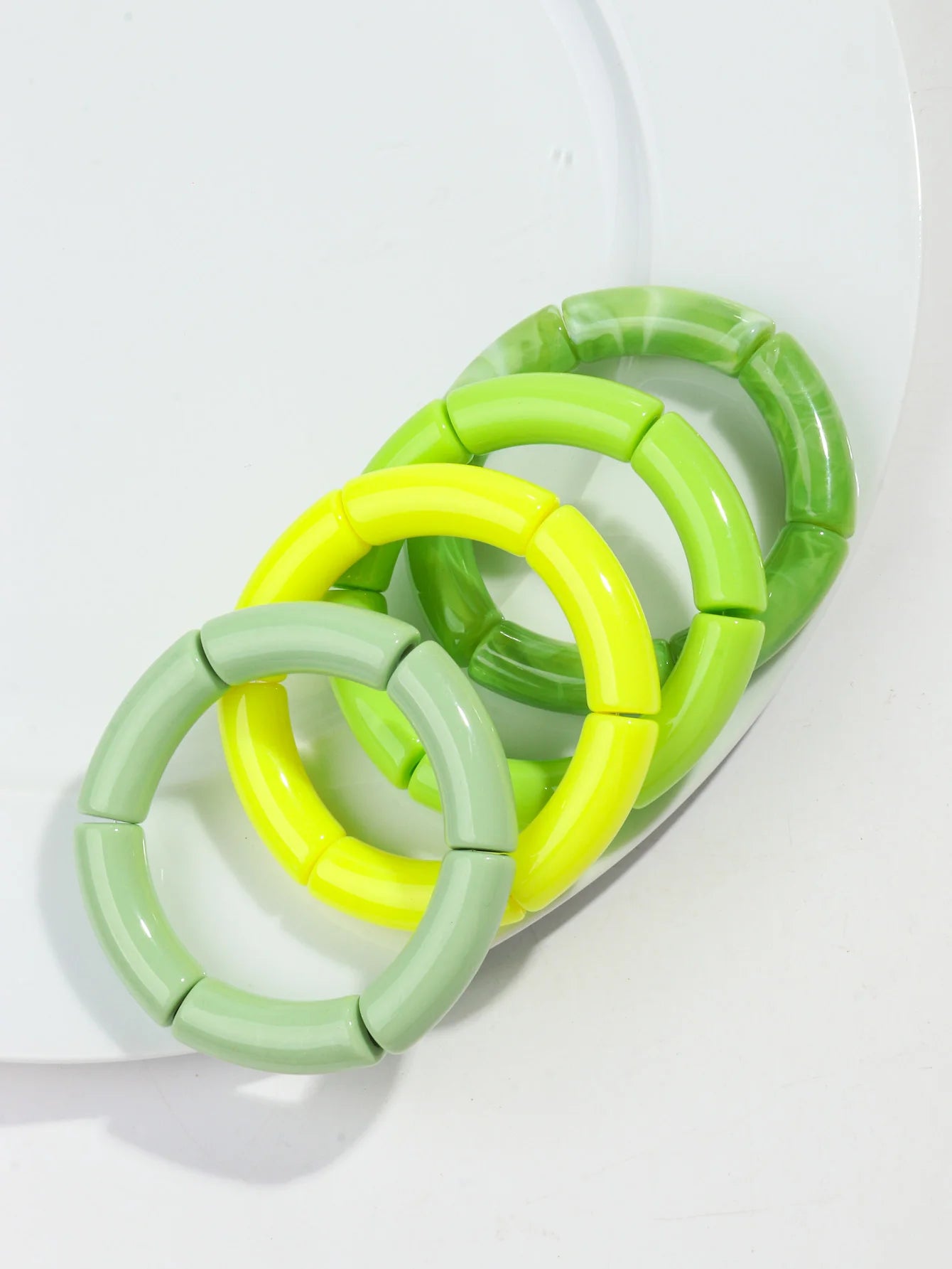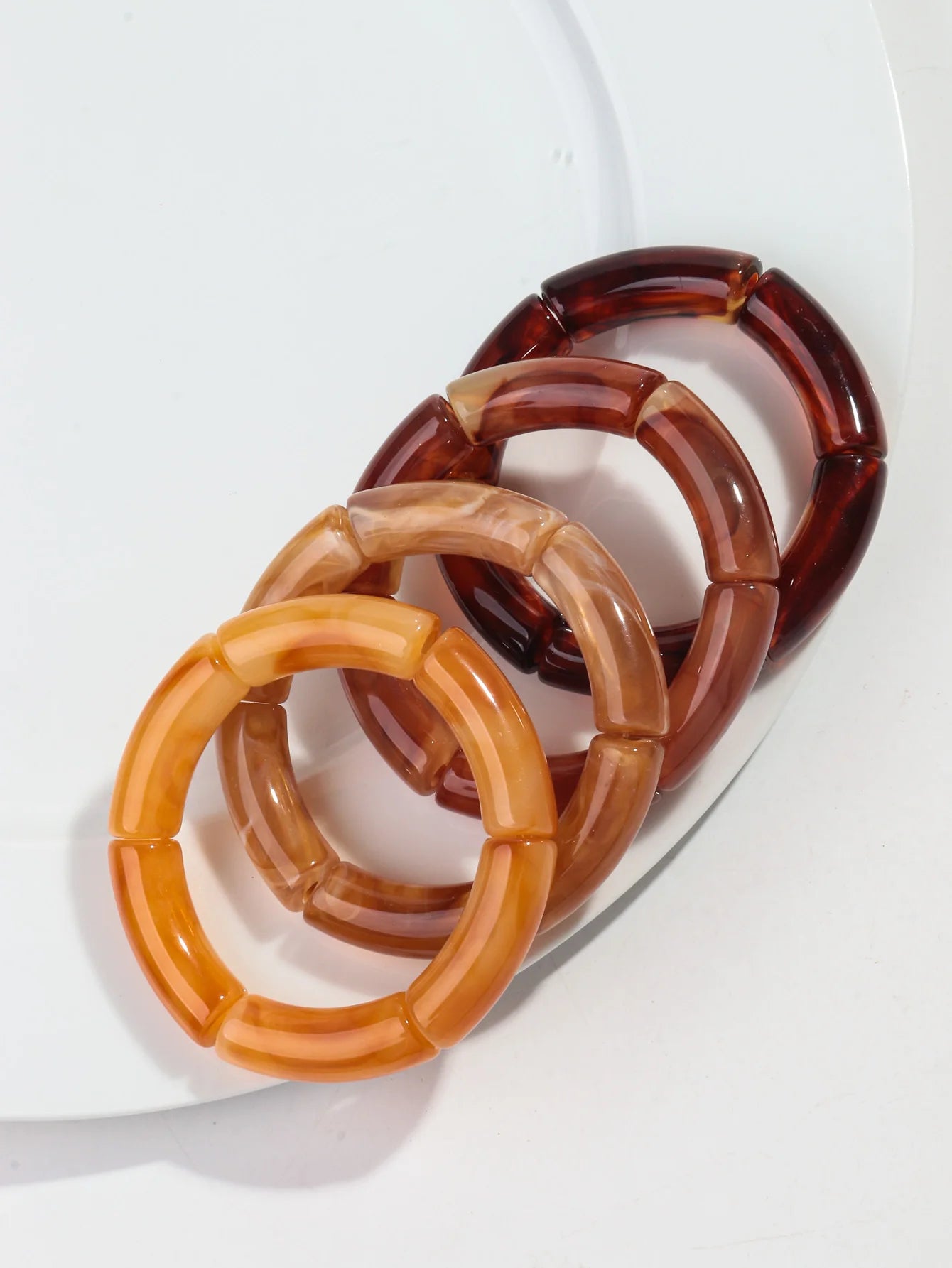 4PCS/Set Fashion Acrylic Resin Amber Bamboo Bead Elastic Bracelet Bangles: Tube Beads Handmake 2024 Trendy Designer Bracelet Set