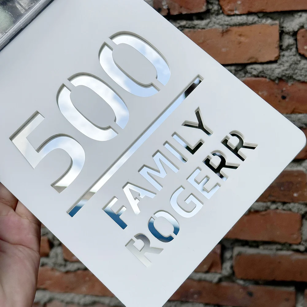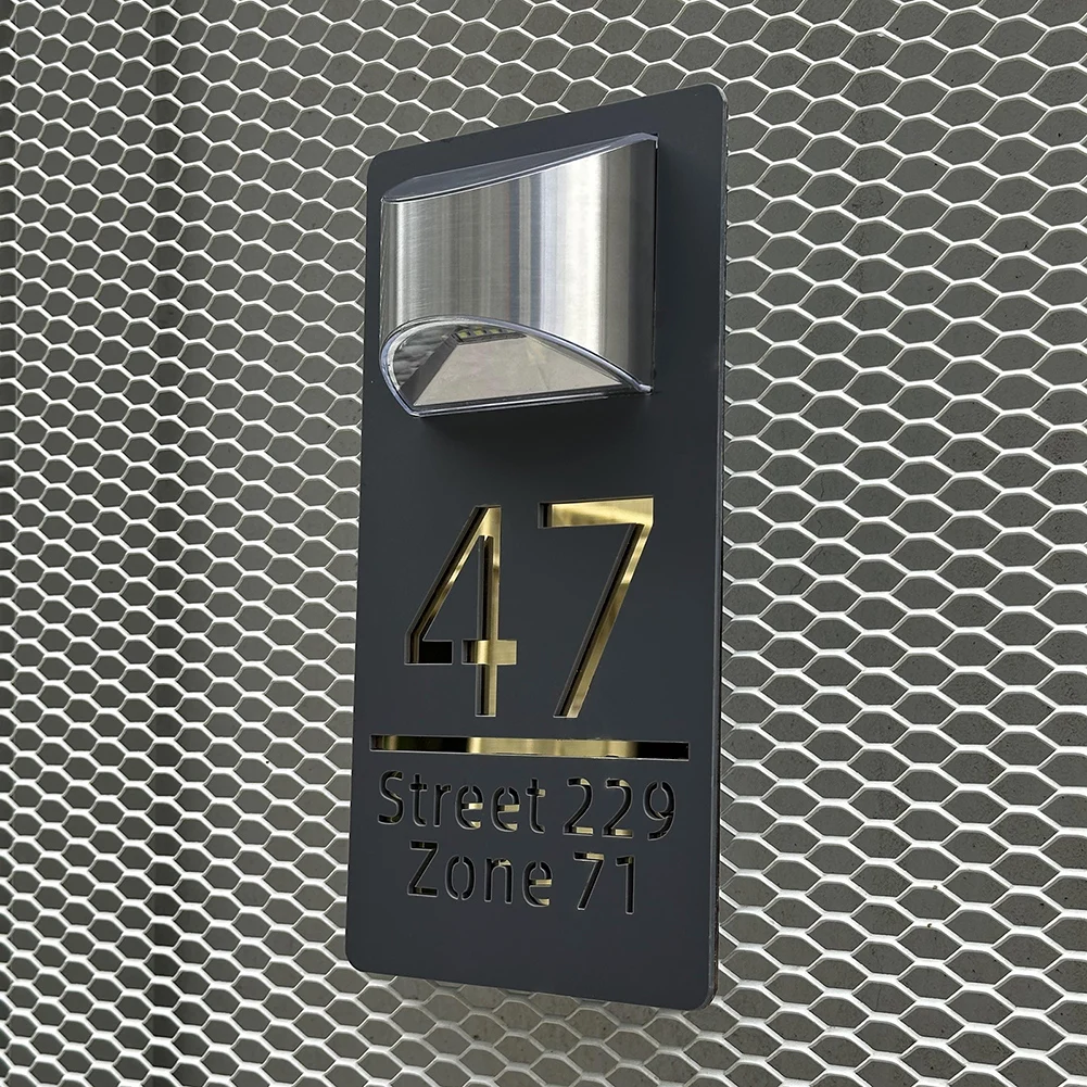 Personalized Exterior lights House Number Sign LED Solar House Sign Custom 3D Laser Cutting Street Family Name Door Sign