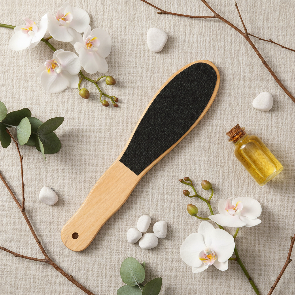Address rough heels, painful pressure points, and flaky skin with a tool that feels solid in your hand and works quickly. The natural wood handle gives a warm, tactile grip while the double-sided abrasive glides across stubborn areas to lift away dead skin—leaving a smooth, touchable surface. This simple, non-electric foot file saves time and money compared with salon visits, making regular foot care an easy, calming routine.