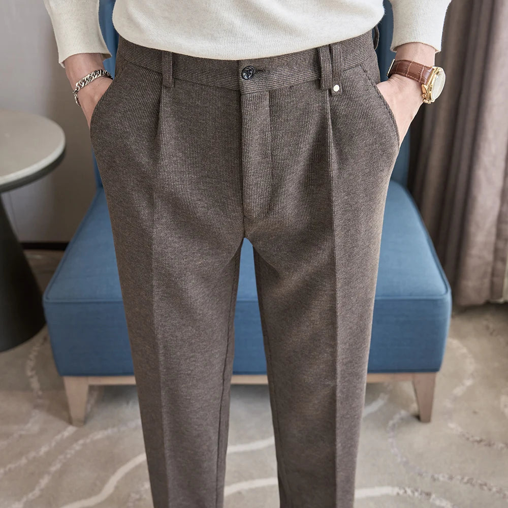 Qj Cinga Herringbone Men Slim Fit Pants Winter Fashion by Qj cinga, delivering tailored warmth and a polished slim silhouette for formal and everyday autumn–winter wear.