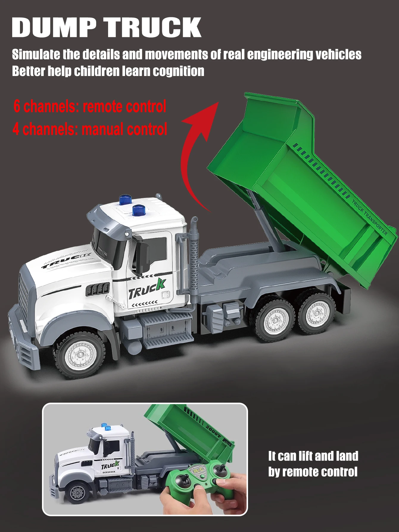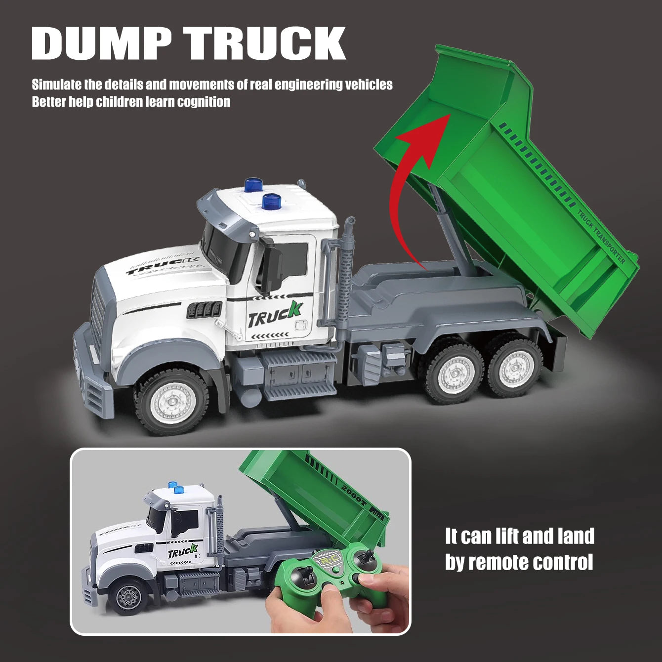 ZapCart RC Dump Truck Toy With Lights And Sounds For Kids