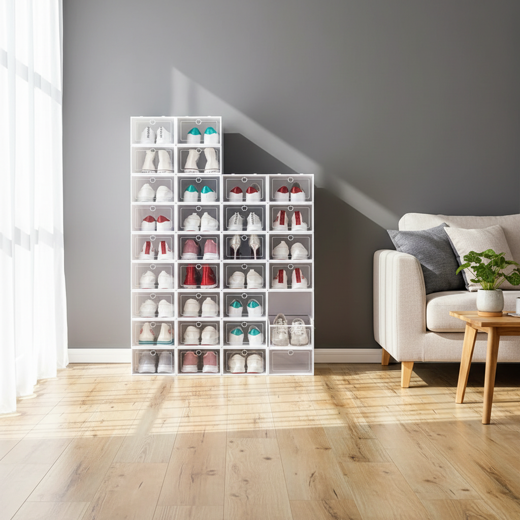 - Material: Hardy plastic transparent shoe box.