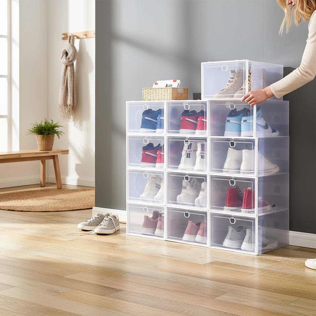 Transparent Stackable Shoe Storage Box – Waterproof & Flip Lid | Zapcart.eu