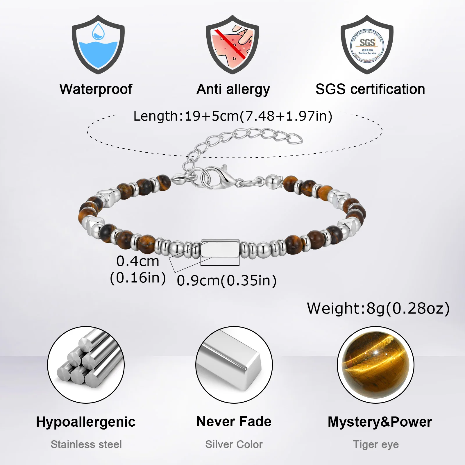 PRJewel Tiger Eye Beaded Bracelet For Men Premium Stainless Steel Chain