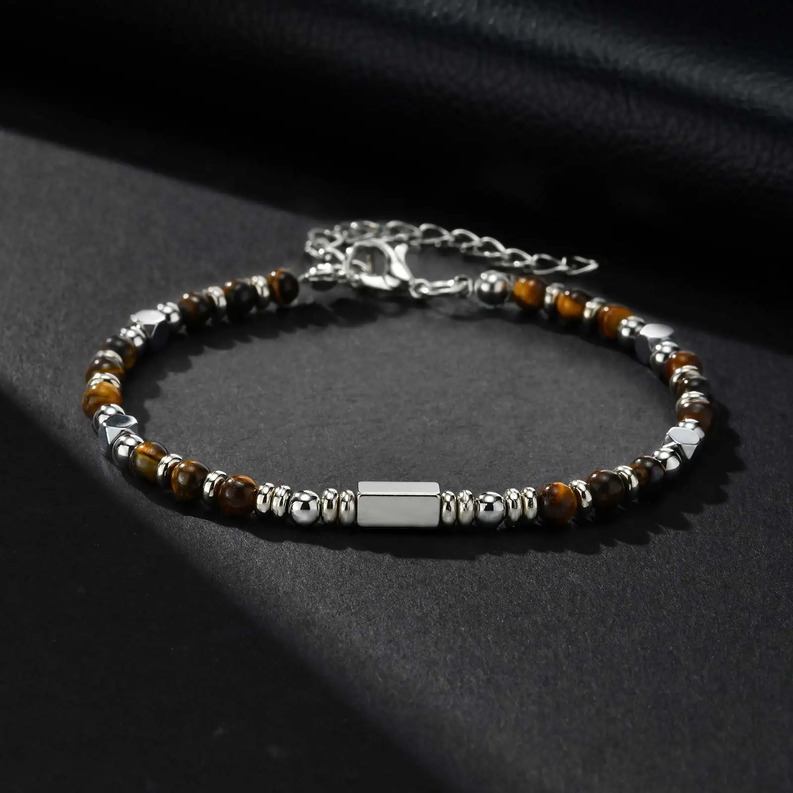 PRJewel Tiger Eye Beaded Bracelet For Men Premium Stainless Steel Chai – zapcart