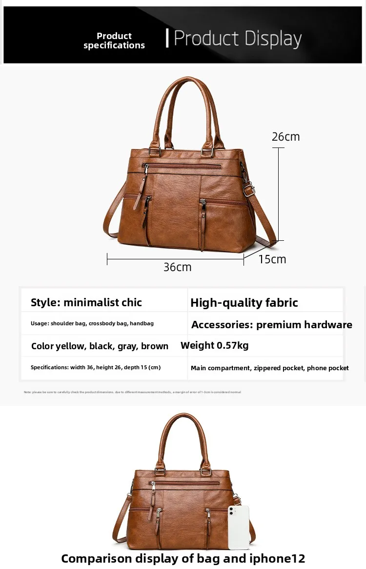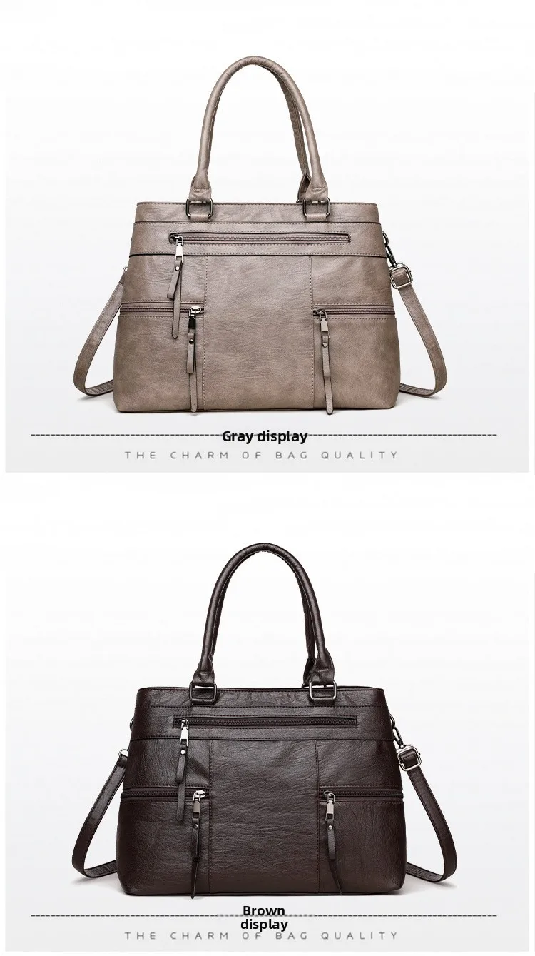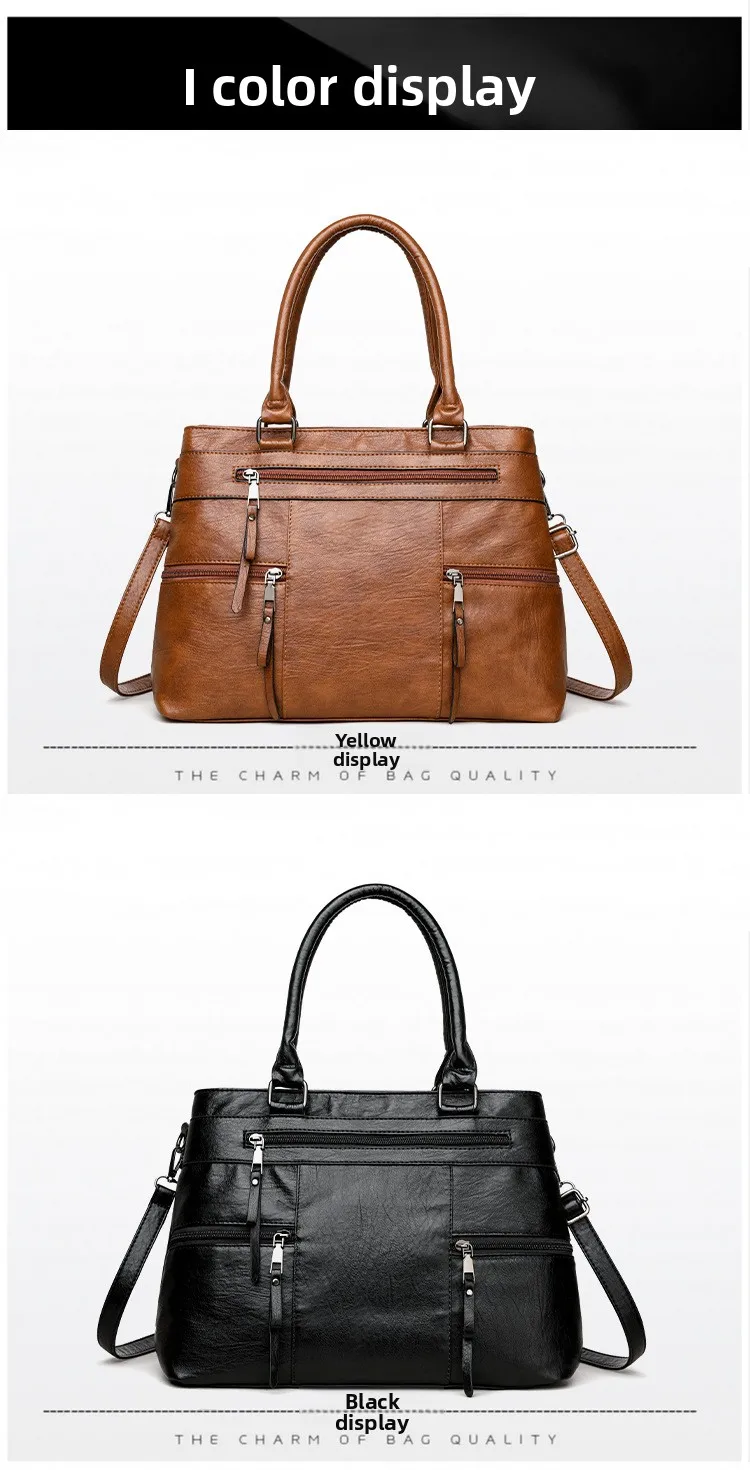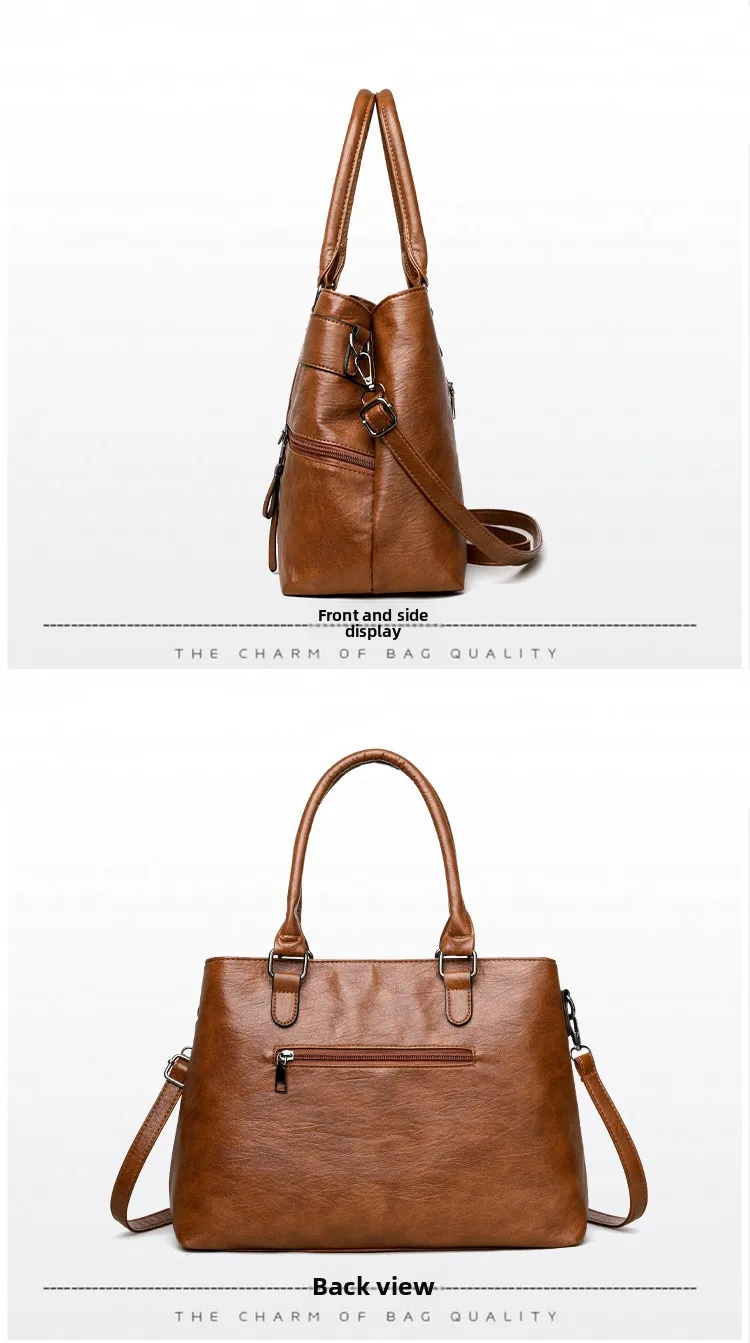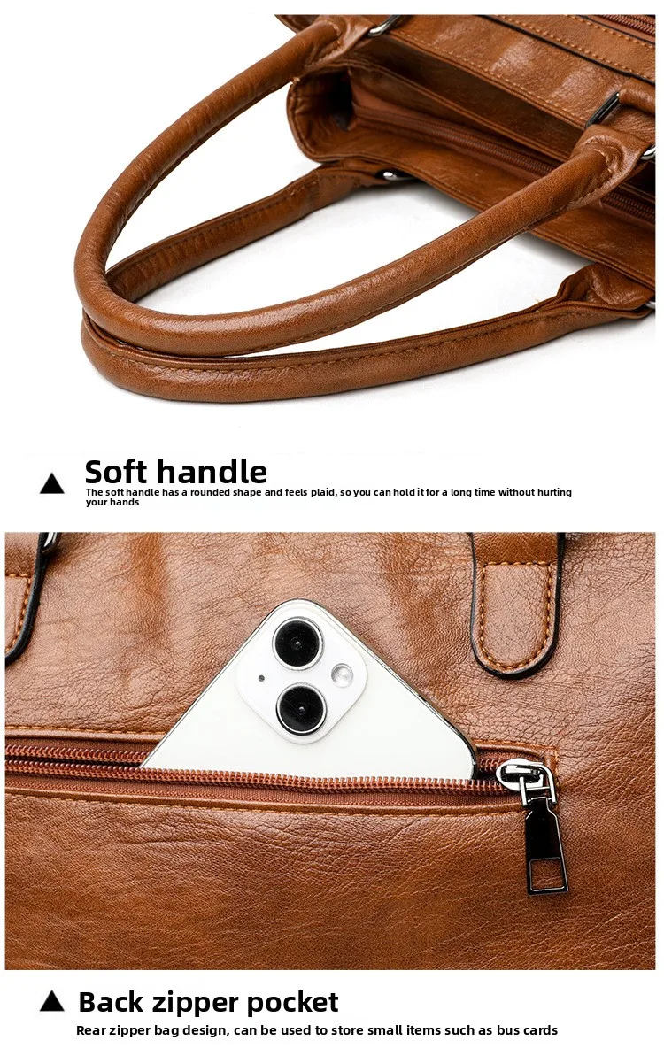 Women's Large Capacity Soft Leather Tote Bag Crossbody